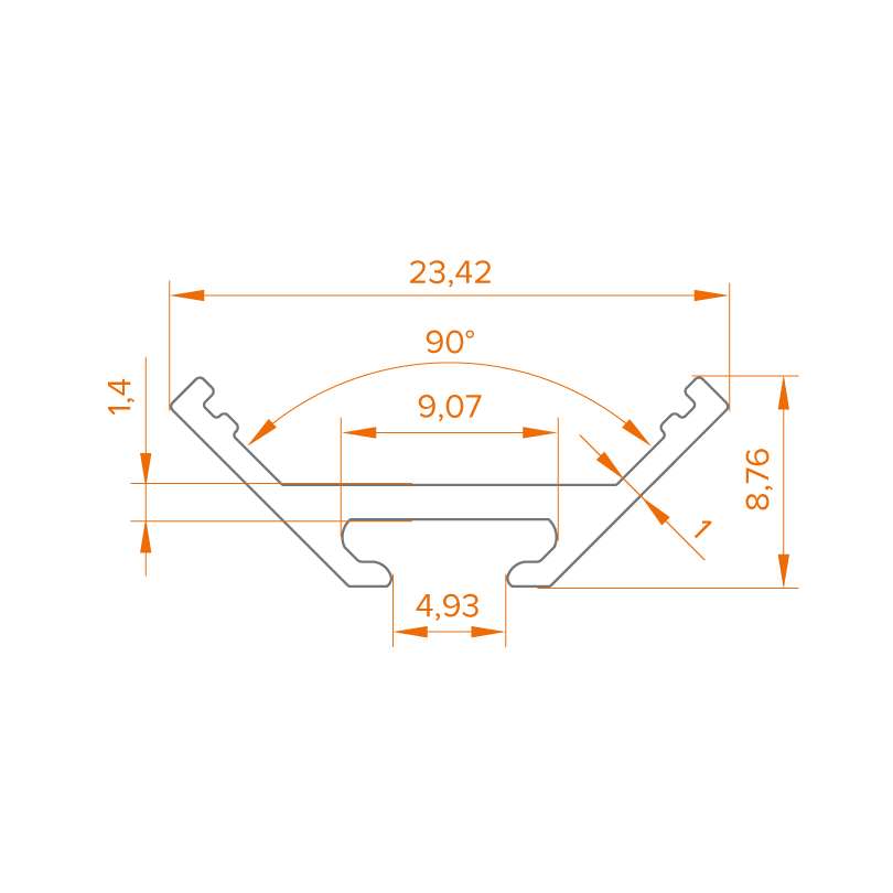 Алюминиевый анодированный профиль для светодиодных лент серии WLS. Ширина площадки для ленты 11,2 мм.