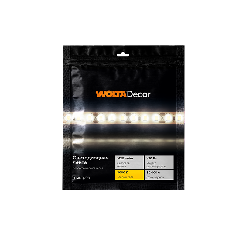 Декоративная светодиодная лента WOLTA®Decor cерии WLS представляет собой современный LED-модуль на гибкой печатной (монтажной) плате, на которой равноудалённо друг от друга расположены мощные светодиоды. Ширина ленты составляет 8-10 миллиметров (в зависимости от модели), а ее толщина со светодиодами 1-2 миллиметра. При изготовлении лента сматывается в катушку длиной 5 метров. Для ограничения подачи тока через наши светодиоды в электрическую схему WLS введены балластные сопротивления (резисторы), которые размещены на самой ленте.